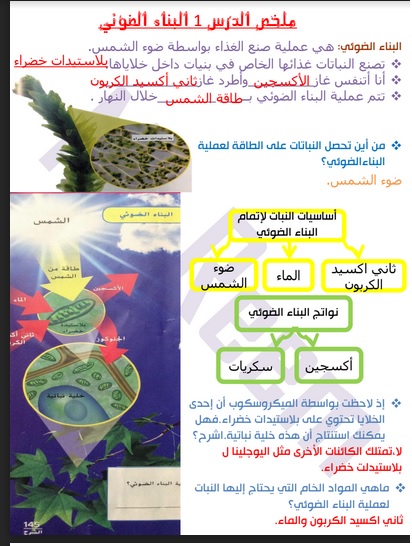 العلوم المتكاملة ملخص البناء الضوئي للصف الخامس ملفاتي